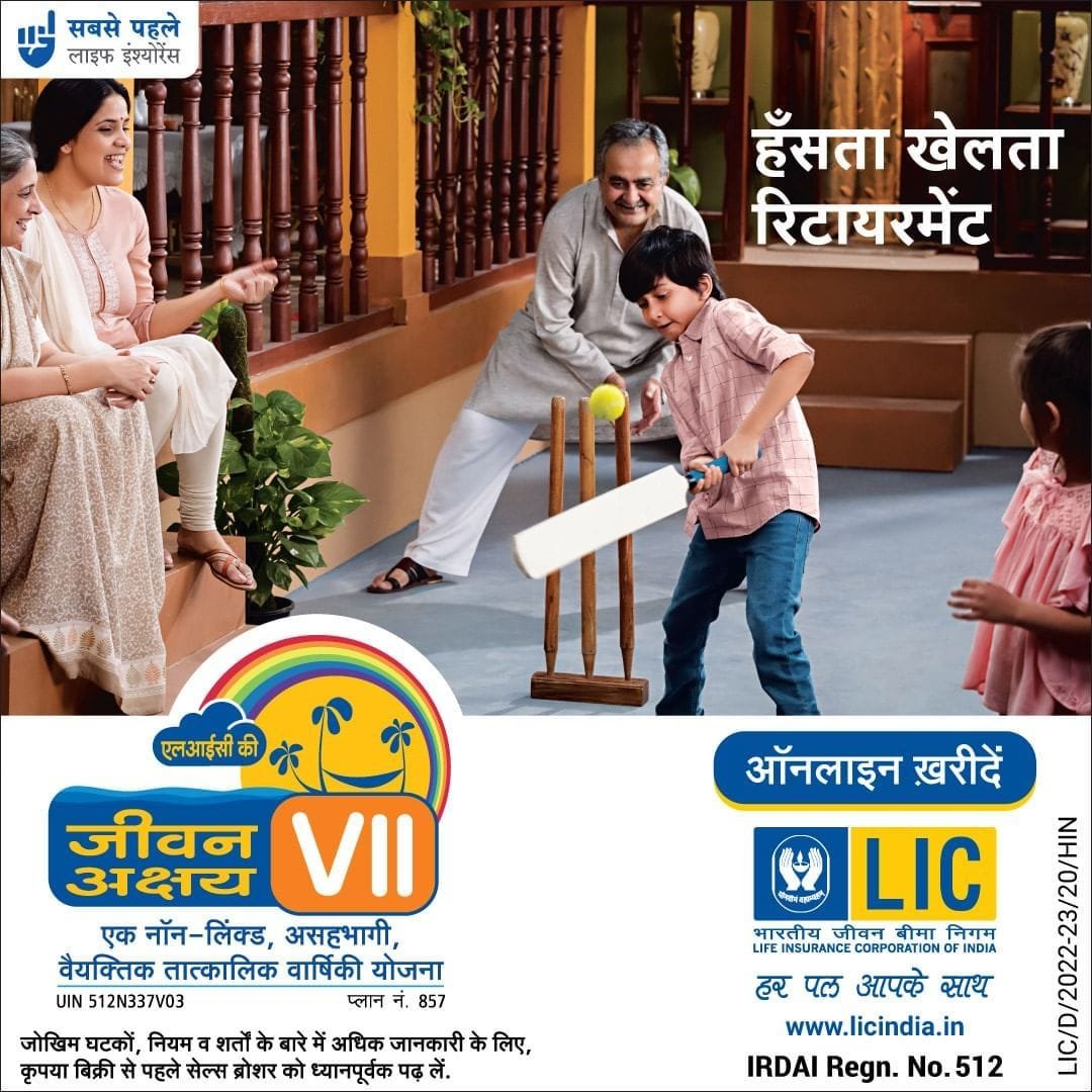 अपने रिटायरमेंट की योजना बनाएं एलआयसी के जीवन अक्षय VII के साथ, जिसमें चुनने के लिए 10 विकल्प हैं। अधिक जानकारी के लिए, अपने LIC एजेंट/शाखा से संपर्क करें या https://licindia.in/jeevan-akshay पर जाएं।